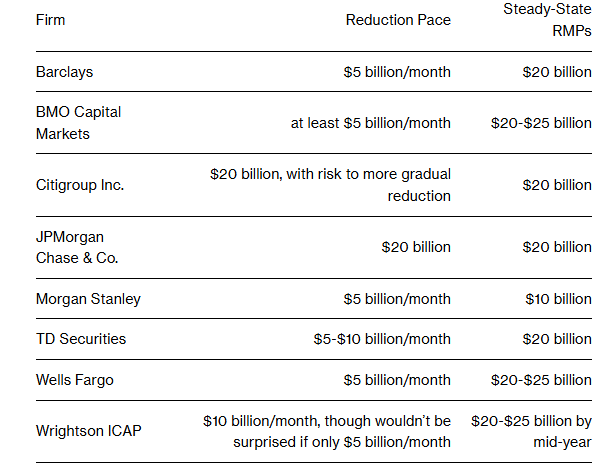 多數(shù)華爾街策略師此前曾預(yù)計(jì),美聯(lián)儲(chǔ)將采取“相對(duì)緩慢而謹(jǐn)慎”的方式,來逐步退出去年年底啟動(dòng)的該計(jì)劃。多家機(jī)構(gòu)預(yù)計(jì)的每月縮減購(gòu)買規(guī)模只有50-100億美元,而此番的削減力度(150億美元)顯然超出了不少業(yè)內(nèi)人士的預(yù)期。