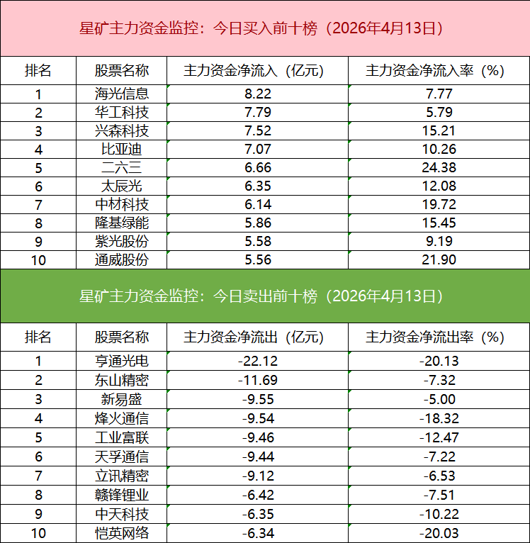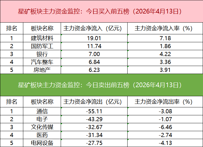 板塊資金流出方面,通信板塊主力資金凈流出居首。