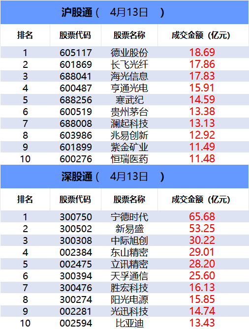 從深股通前十大成交個股來看,寧德時代位居首位;新易盛和中際旭創(chuàng)分居二、三位。