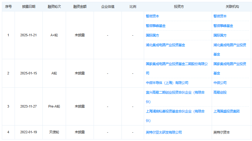神州半導(dǎo)體共經(jīng)歷4輪融資,投資方包括產(chǎn)業(yè)合作方英特爾亞太研發(fā)有限公司、中微半導(dǎo)體(上海)有限公司等,知名國(guó)有資本國(guó)家集成電路產(chǎn)業(yè)投資基金二期股份有限公司、湖北集成電路產(chǎn)業(yè)投資基金、上海浦宸私募投資基金合伙企業(yè)(有限合伙),以及產(chǎn)業(yè)資本智微資本、智微攀峰基金和風(fēng)投機(jī)構(gòu)國(guó)際國(guó)方等。