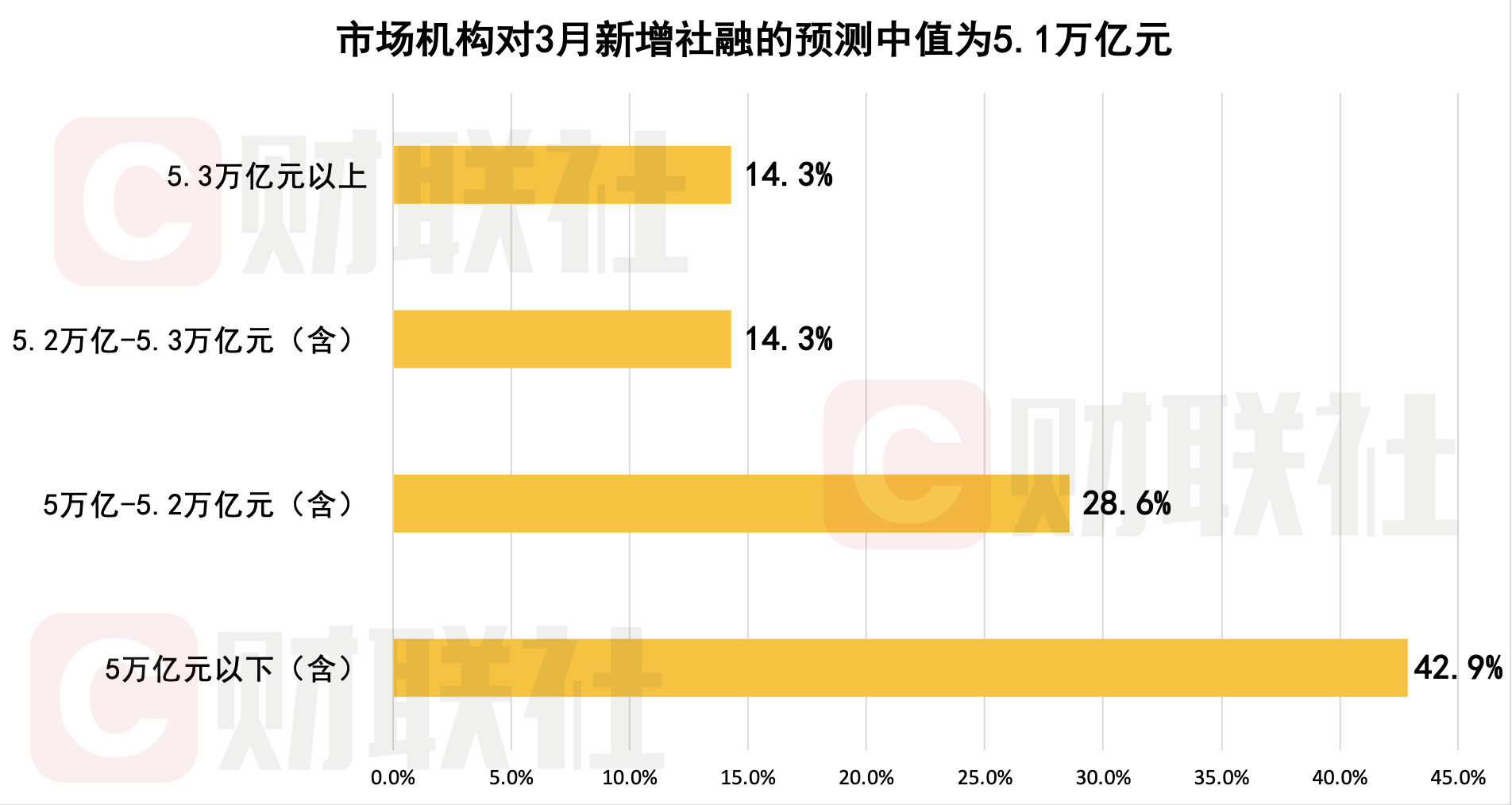 3月新增社融或同比少增,市場(chǎng)預(yù)測(cè)中值為5.1萬(wàn)億元