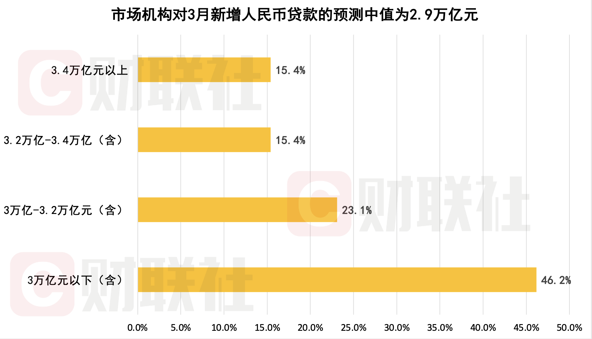 3月人民幣新增貸款或同比少增,市場(chǎng)預(yù)測(cè)中值為2.9萬(wàn)億元