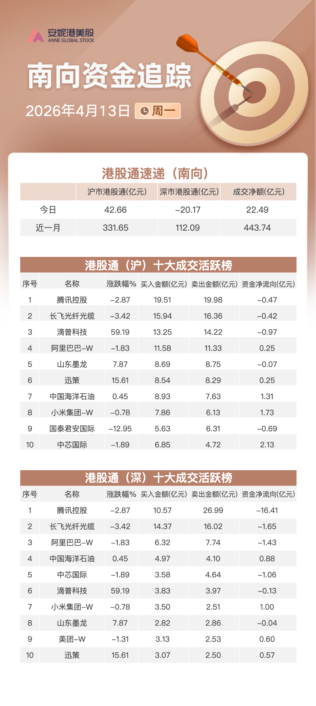 個股方面,交易所數(shù)據(jù)顯示,今日南向資金
