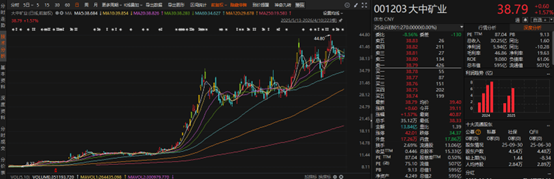 大中礦業(yè)湖南雞腳山鋰礦通天廟礦段及四川加達(dá)鋰礦首采區(qū)經(jīng)自然資源部評(píng)審備案的鋰礦折合碳酸鋰當(dāng)量超472萬(wàn)噸,資源量在國(guó)內(nèi)處于領(lǐng)先地位,且未來(lái)增儲(chǔ)空間較大。大中礦業(yè)3月23日公告,與全球化工巨頭萬(wàn)華化學(xué)達(dá)成深度合作,直接鎖定未來(lái)明確的業(yè)績(jī)預(yù)期。據(jù)雙方簽署的協(xié)議,此次合作是從股權(quán)綁定、產(chǎn)能共建到供銷閉環(huán)的全鏈條深度捆綁——雙方擬共同設(shè)立合資公司投建年產(chǎn)20萬(wàn)噸鋰鹽項(xiàng)目,其中一期3萬(wàn)噸,提前鎖定萬(wàn)華化學(xué)的鋰鹽需求。二級(jí)市場(chǎng)方面,大中礦業(yè)自2025年9月低點(diǎn)以來(lái),股價(jià)累計(jì)最大漲幅達(dá)301.43%。